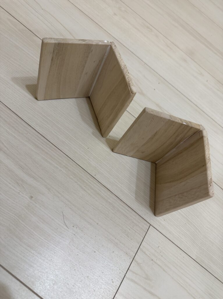 まずは2枚をL字に、そのあとさらに組み合わせて四角にします。